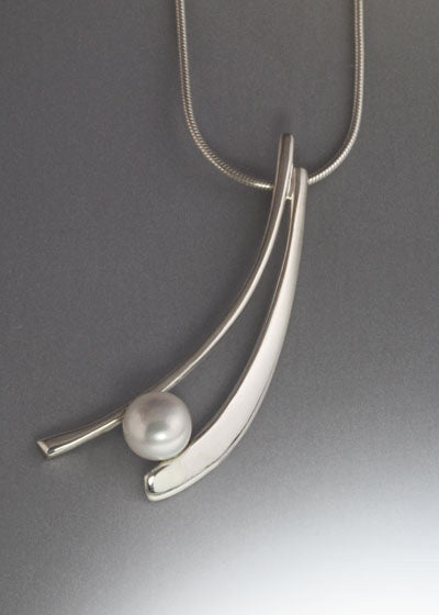 Sterling Silver Pendant with 8mm Pearl (shown in White, see options to choose pearl color)